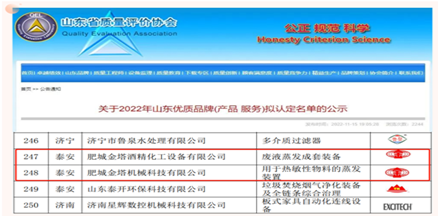 榮耀閃閃,品牌彰顯。 近日,2022年山東省優(yōu)質(zhì)品牌榜單揭曉。山東金塔機(jī)械集團(tuán)“廢液蒸發(fā)成套裝備”、“用于熱敏性物料的蒸發(fā)裝置”榮耀上榜。至此,自2019年榜單發(fā)布以來,金塔集團(tuán)共有10項(xiàng)產(chǎn)品榮獲山東優(yōu)質(zhì)品牌稱號(hào)。 山東金塔集團(tuán)守正創(chuàng)新強(qiáng)主業(yè),精耕細(xì)作鑄品牌,突出以科技創(chuàng)新強(qiáng)化品牌支撐,年年出成果,歲歲有專利,新工藝、新技術(shù)、新產(chǎn)品拓寬了市場新領(lǐng)域。作為《酒精蒸餾塔》、《糠醛水解鍋》、《糠醛蒸餾塔》等20余項(xiàng)國家行業(yè)標(biāo)準(zhǔn)的制定者,金塔集團(tuán)聚焦雙碳目標(biāo),把控綠色節(jié)能方向,牢牢占據(jù)行業(yè)制高點(diǎn),贏得了市場話語權(quán)。通過深入實(shí)施品牌戰(zhàn)略,致力打造自主品牌,金塔產(chǎn)品質(zhì)量優(yōu)、品質(zhì)好、標(biāo)準(zhǔn)化的綜合優(yōu)勢得到全方位厚植。 金塔品牌靚,展示好形象。“金”字及圖商標(biāo),中國馳名商標(biāo);首批“好品山東”,金塔榮耀其中;山東優(yōu)質(zhì)品牌,連年完美上榜…金塔在出新中更加出彩,品牌在打造中愈加閃亮。 品牌閃爍,金塔增色。以品牌樹形象,以品牌闖市場,金塔品牌之路越走越寬廣,為助推企業(yè)高質(zhì)量發(fā)展注入了強(qiáng)大動(dòng)能。